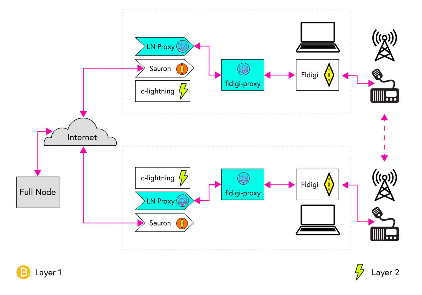 The fldigi-proxy code is available here, and the compatible version of lnproxy is specified in the README. If you have questions about the project, issues using it, or are a amateur radio operator interested in testing, feel free to leave an issue in the GitHub repository, contact me at [email protected], or join the discussion on development in the Global Mesh Labs Slack.