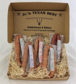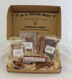Looking for a gift to give a special someone or to treat a list of business clients? You can’t go wrong with a gift box full of quality smoked meats from our smokehouse. Browse our selection below and see what offerings we have and can ship out for you today. If you do not see a combination that you like, please feel free to call us at 979-531-0888 and we will be happy to customize a box for you. We also offer quantity discounts for businesses. Call us if you are interested in receiving a quote.